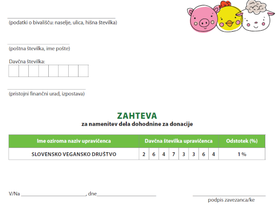 Namenitev 1% dohodnine Slovenskemu veganskemu društvu